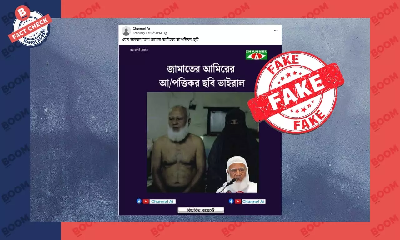 গত ১ ফেব্রুয়ারি ‘Channel Ai’ নামক একটি পেজ থেকে ছবিটি পোস্ট করা হয়। পোস্টে উল্লেখ করা হয়, “এবার ভাইরাল হলো জামাত আমিরের আপত্তিকর ছবি"। পোস্টটির স্ক্রিনশট দেখুন --