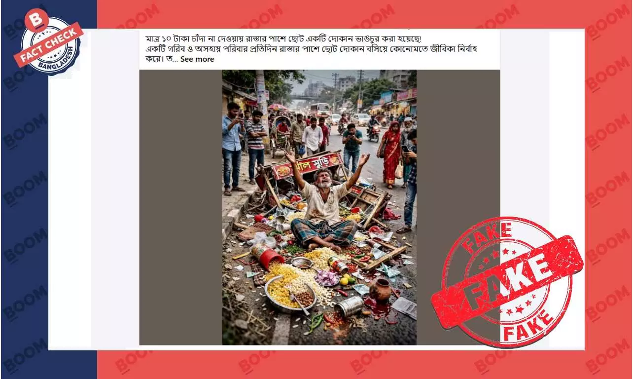 সুতরাং এআই প্রযুক্তিতে তৈরি ছবিকে চাঁদা না দেওয়ায় ভাসমান দোকান ভাঙচুর দাবিতে প্রচার করা হচ্ছে ফেসবুকে, যা বিভ্রান্তিকর।