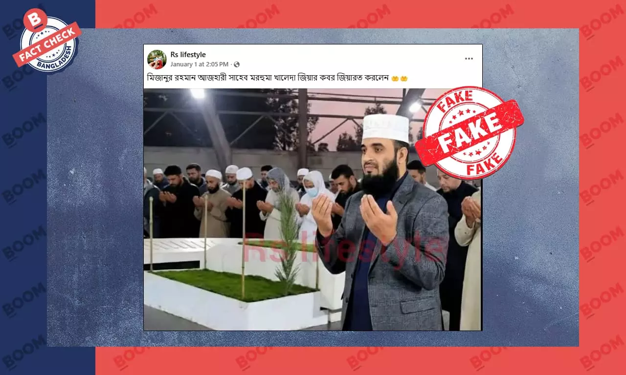 সামাজিক যোগাযোগ মাধ্যম ফেসবুকে একটি ছবি পোস্ট করে বলা হচ্ছে, জনপ্রিয় ইসলামী বক্তা মিজানুর রহমান আজহারীর প্রয়াত সাবেক প্রধানমন্ত্রী বেগম খালেদা জিয়ার কবর জিয়ারত করার ছবি। এ ধরনের কয়েকটি পোস্ট দেখুন এখানে, এখানে ও এখানে।