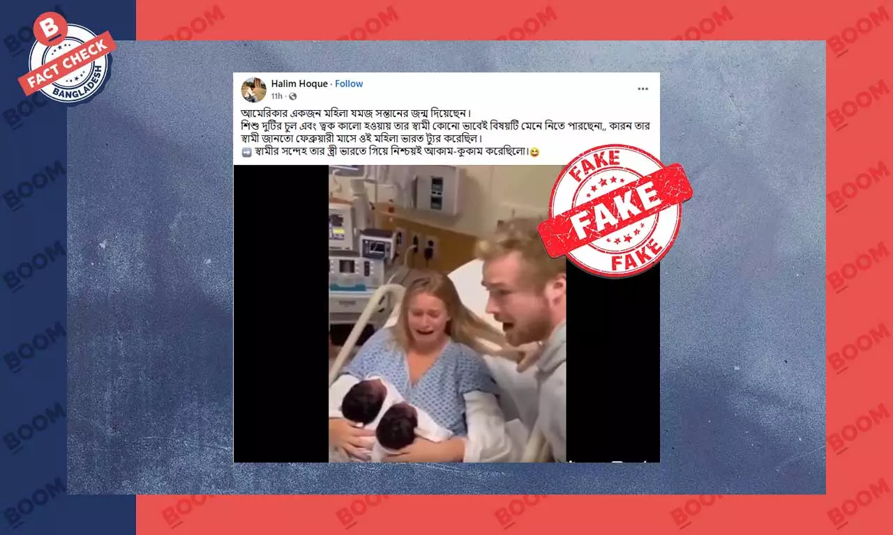 সামাজিক যোগাযোগ মাধ্যম ফেসবুকে একটি ভিডিও পোস্ট করে বলা হচ্ছে, আমেরিকার এক নারী যমজ সন্তানের জন্ম দিয়েছেন, তবে শিশু দুটির গায়ের রঙ ও চুল কালো হওয়ায় তার স্বামী বিষয়টি মেনে নিতে পারছেন না। এরকম কয়েকটি পোস্ট দেখুন এখানে, এখানে ও এখানে।