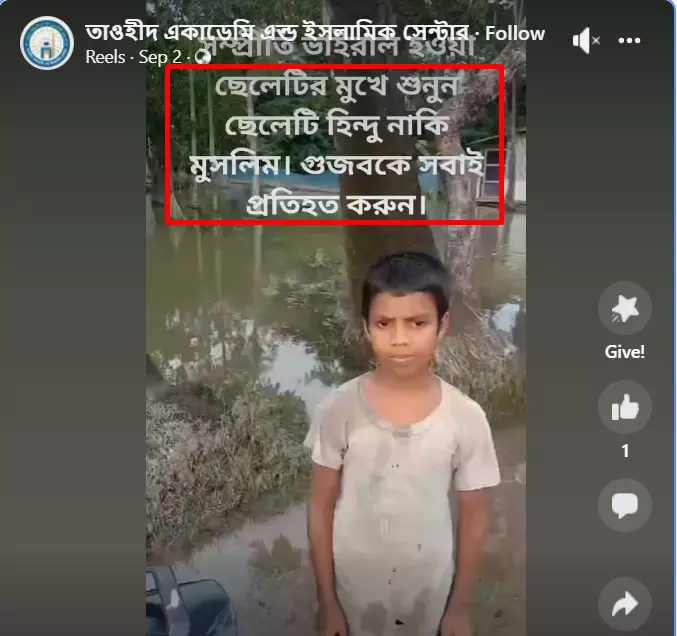 পরবর্তীতে পেজটি ঘুরে আজ ২ সেপ্টেম্বর আরো এ সংক্রান্ত আরো একটি ভিডিও পাওয়া যায়। এতে উল্লেখ করা হয়, সম্প্রতি ভাইরাল হওয়া ছেলেটির মুখে শুনুন ছেলেটি হিন্দু নাকি মুসলিম। গুজবকে সবাই প্রতিহত করুন। ভিডিওটি আলোচ্য ছেলেটিকে বলতে শোনা যায়; তাঁর নাম সোহেল, বাবার নাম আব্দুল হক ও মায়ের নাম রোজিনা। এছাড়াও সে মাদ্রাসাতে পড়ে এমন তথ্যও উল্লেখ করা হয়েছে ভিডিওতে। পোস্টটির (ভিডিও) স্ক্রিনশট দেখুন--