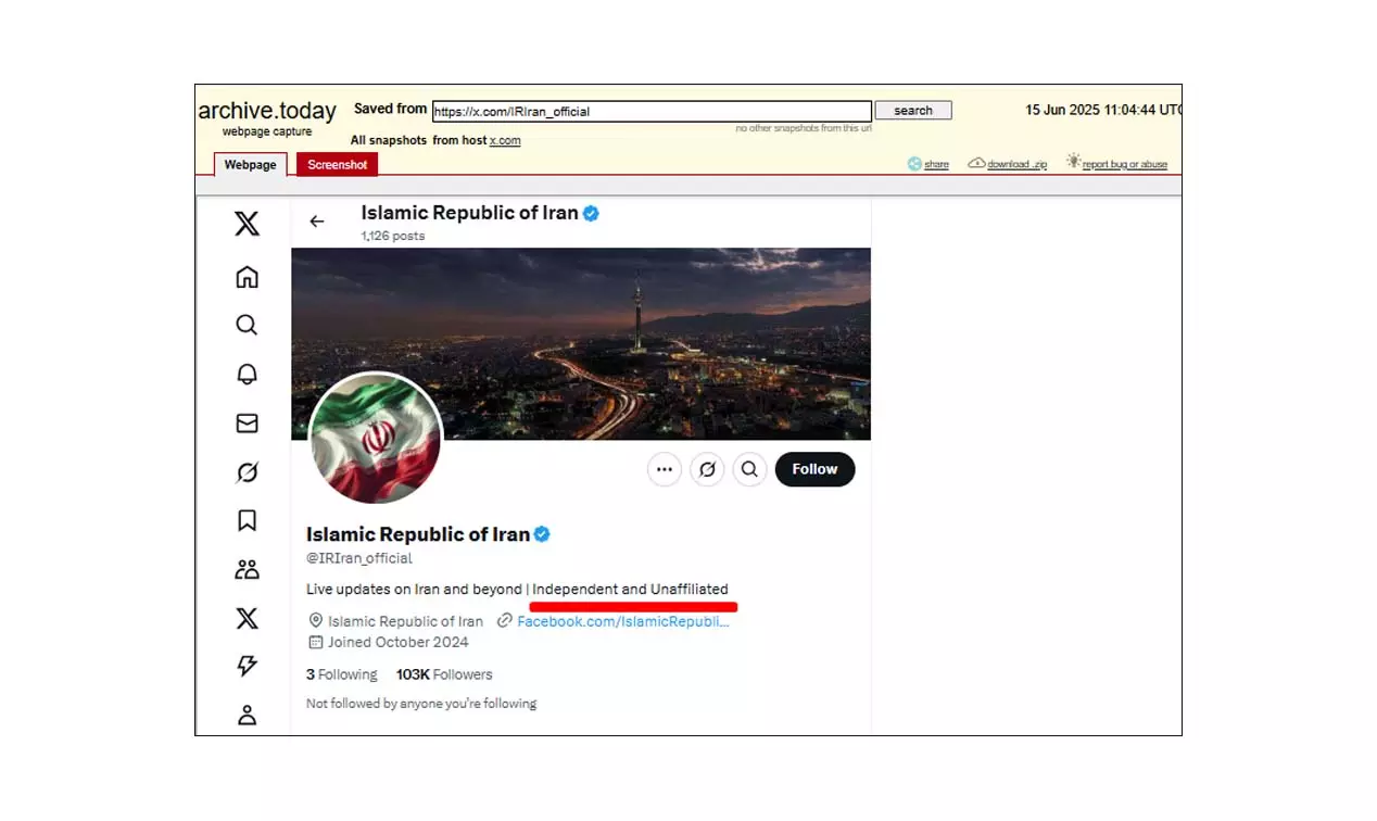 পরবর্তীতে সার্চ করে এই অ্যাকাউন্টের একটি আর্কাইভ কপি পাওয়া যায়। আর্কাইভ কপি থেকে দেখা যায় অ্যাকাউন্টের বায়োতে উল্লেখ করা ছিলো এটি 'স্বাধীন এবং আন-এফিলিয়েটেড' অ্যাকাউন্ট। স্ক্রিনশট দেখুন--