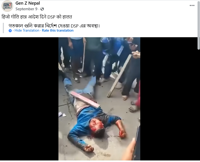 সুতরাং নেপালে জেন-জি আন্দোলনের ভিডিও দিয়ে বাংলাদেশে হিন্দু ছেলেকে পিটিয়ে হত্যার দাবিতে প্রচার করা হচ্ছে ফেসবুকে, যা বিভ্রান্তিকর।