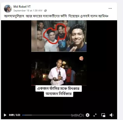 গত ১৮ ডিসেম্বর 'Md Robel YT' নাম একটি ফেসবুক আইডি থেকে একটি ভিডিও শেয়ার করে বলা হয়, "আলহামদুলিল্লাহ আজ হৃদয়ের হত্যাকারীদের ফাঁসি দিয়েছেন @সবাই বলেন আমিন#"। ফেসবুক পোস্টটির স্ক্রিনশট দেখুন--