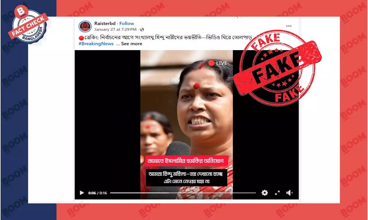 গত ২৭ জানুয়ারি ‘Raisterbd’ নামক একটি পেজ থেকে ভিডিওটি পোস্ট করে উল্লেখ করা হয়, “ব্রেকিং: নির্বাচনের আগে সংখ্যালঘু হিন্দু নারীদের ভয়ভীতি—ভিডিও ঘিরে তোলপাড়।” নিচে পোস্টটির স্ক্রিনশট দেখুন--